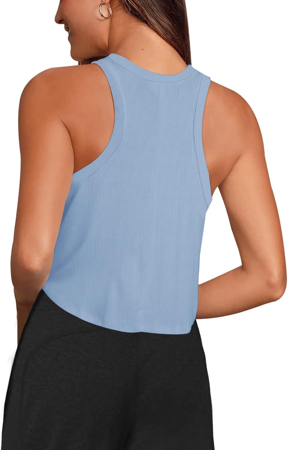 LASLULU Womens Crop Tops Sleeveless Workout Tops Halter Neck Flowy Athletic Shirts Cropped Tank Muscle Tank(Blue Glass)