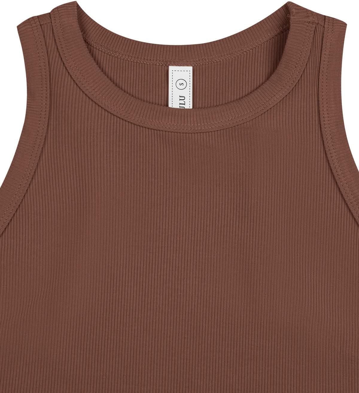 LASLULU Womens Crop Tops Sleeveless Workout Tops Halter Neck Flowy Athletic Shirts Cropped Tank Muscle Tank(Coffee)