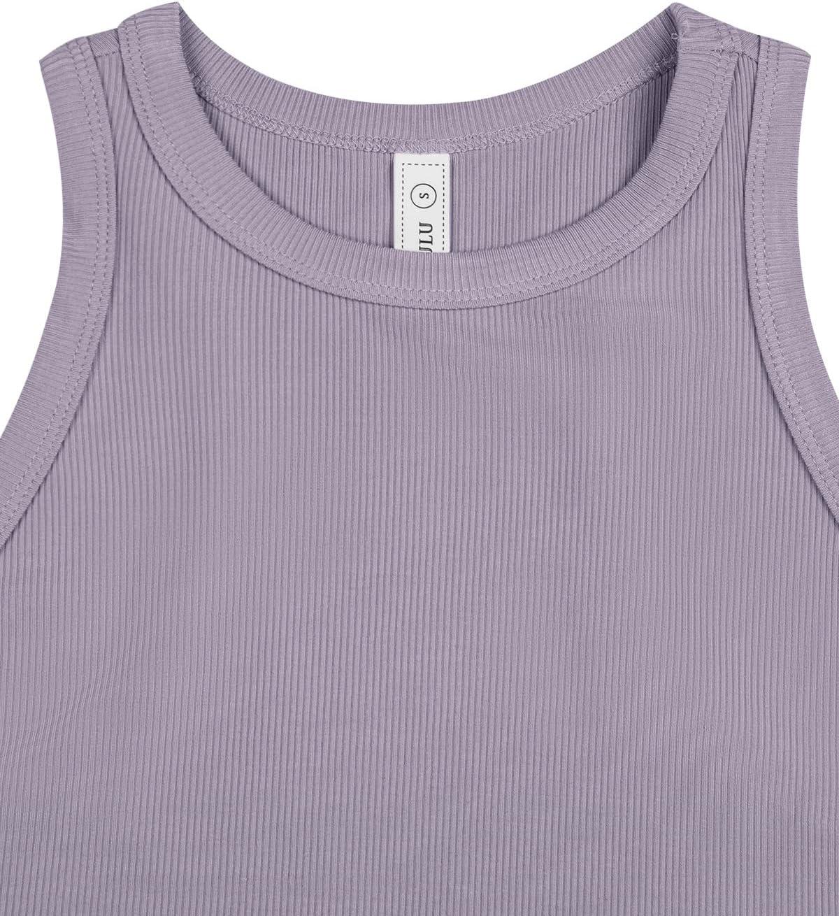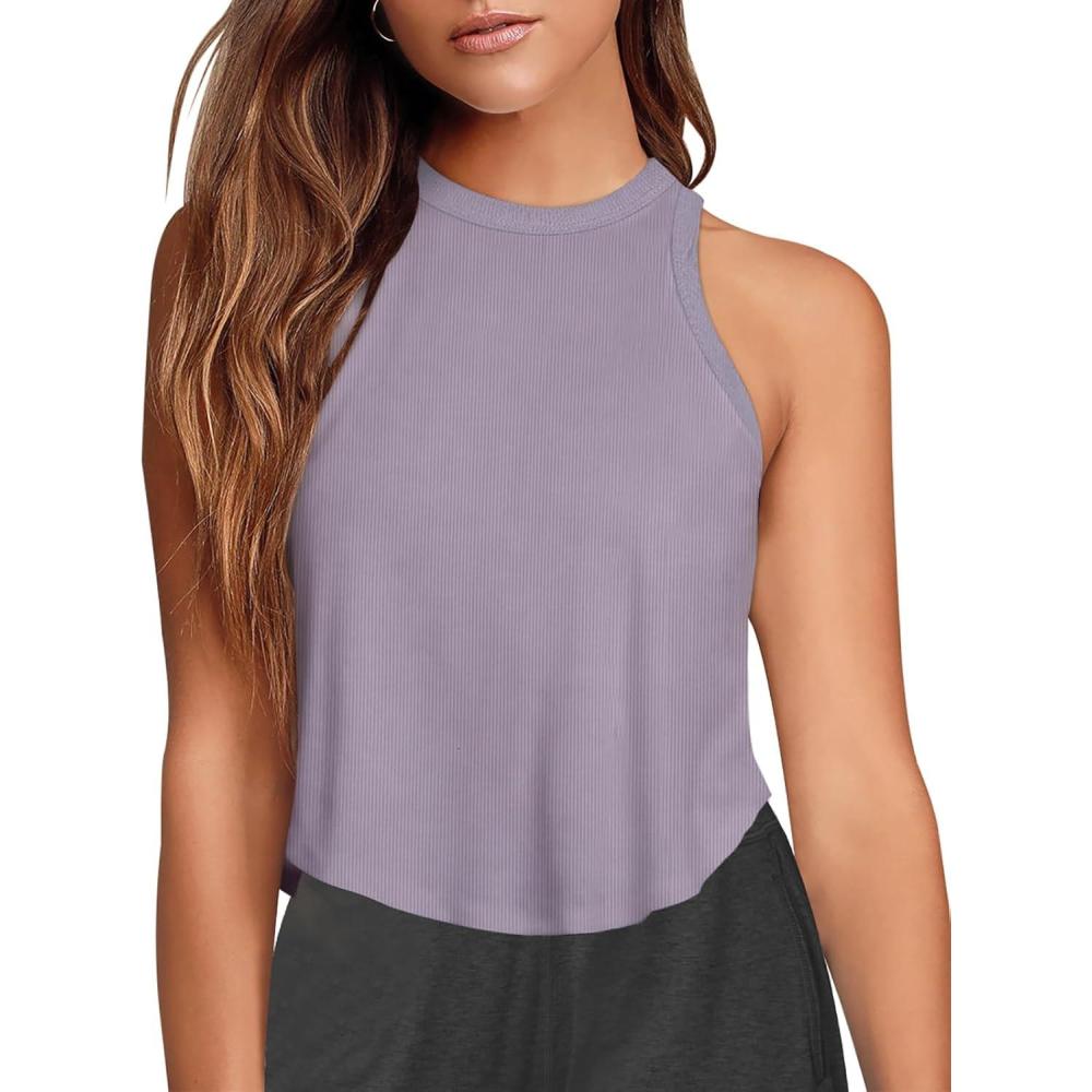 LASLULU Womens Crop Tops Sleeveless Workout Tops Halter Neck Flowy Athletic Shirts Cropped Tank Muscle Tank(Hazy Lilac)