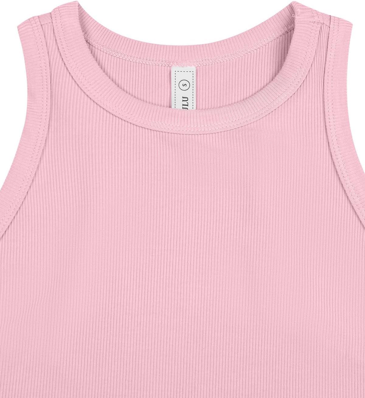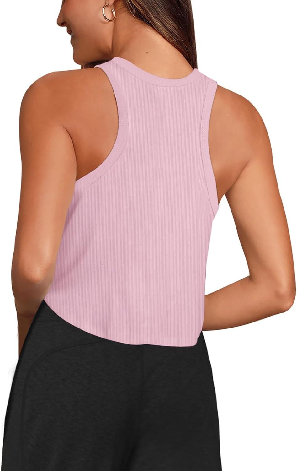 LASLULU Womens Crop Tops Sleeveless Workout Tops Halter Neck Flowy Athletic Shirts Cropped Tank Muscle Tank(Parfait Pink)