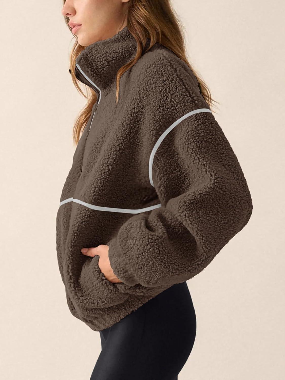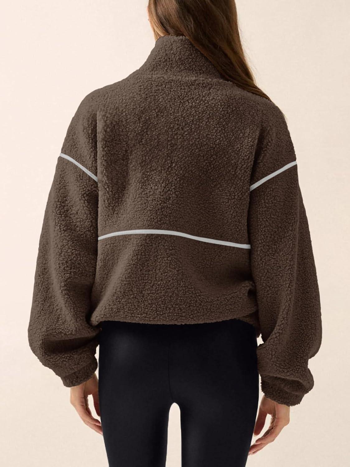 LASLULU Womens Fuzzy Sherpa Fleece Jacket Zip Up Oversized Sweatshirts Long Sleeve Winter Clothes Warm Sweater(Coffee)