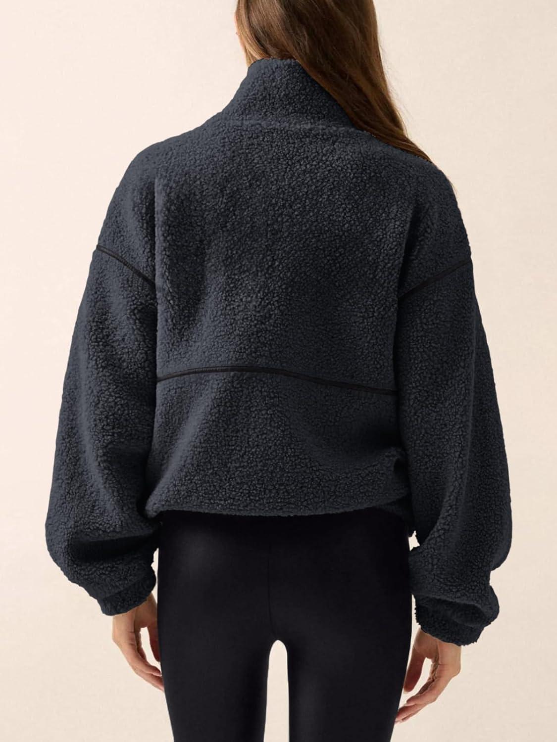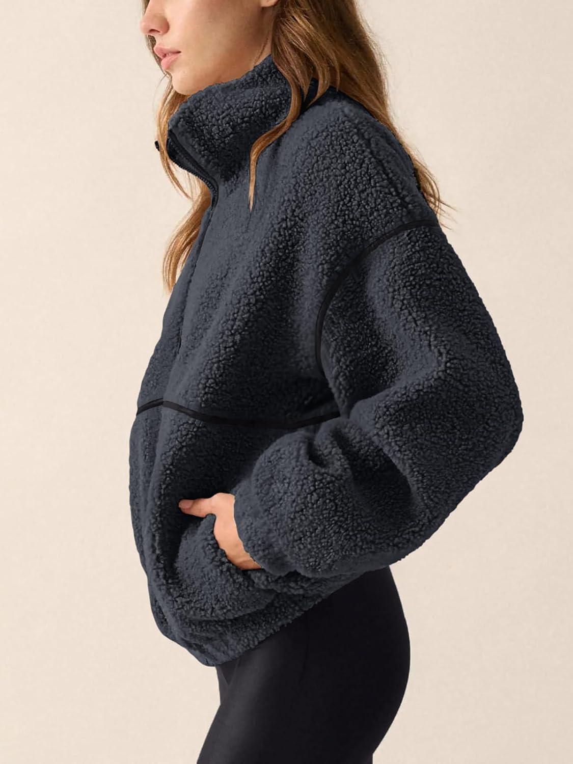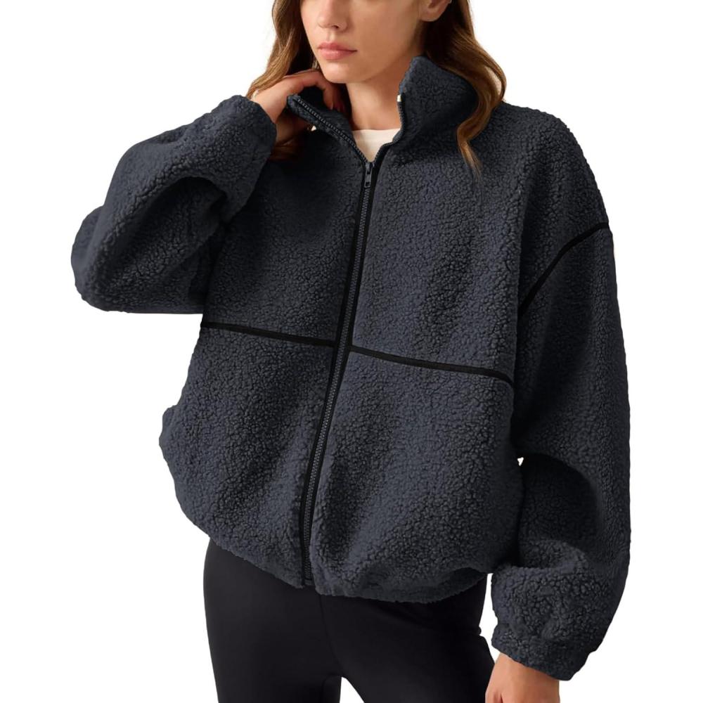 LASLULU Womens Fuzzy Sherpa Fleece Jacket Zip Up Oversized Sweatshirts Long Sleeve Winter Clothes Warm Sweater(Dark Grey)