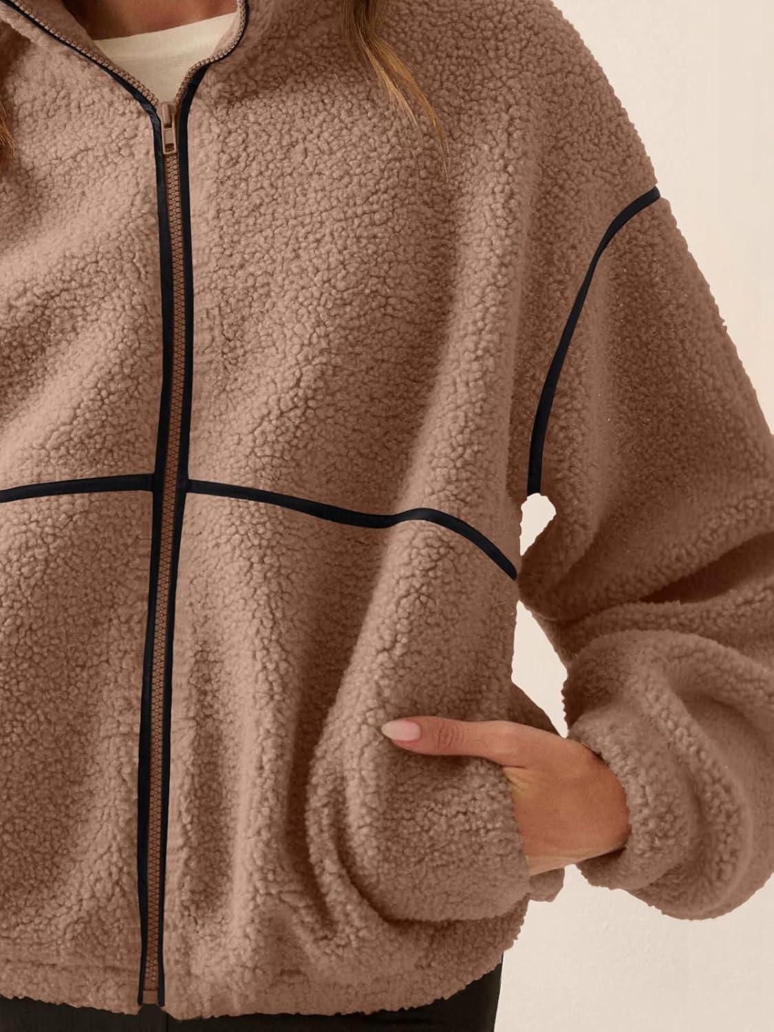LASLULU Womens Fuzzy Sherpa Fleece Jacket Zip Up Oversized Sweatshirts Long Sleeve Winter Clothes Warm Sweater(Teddy)