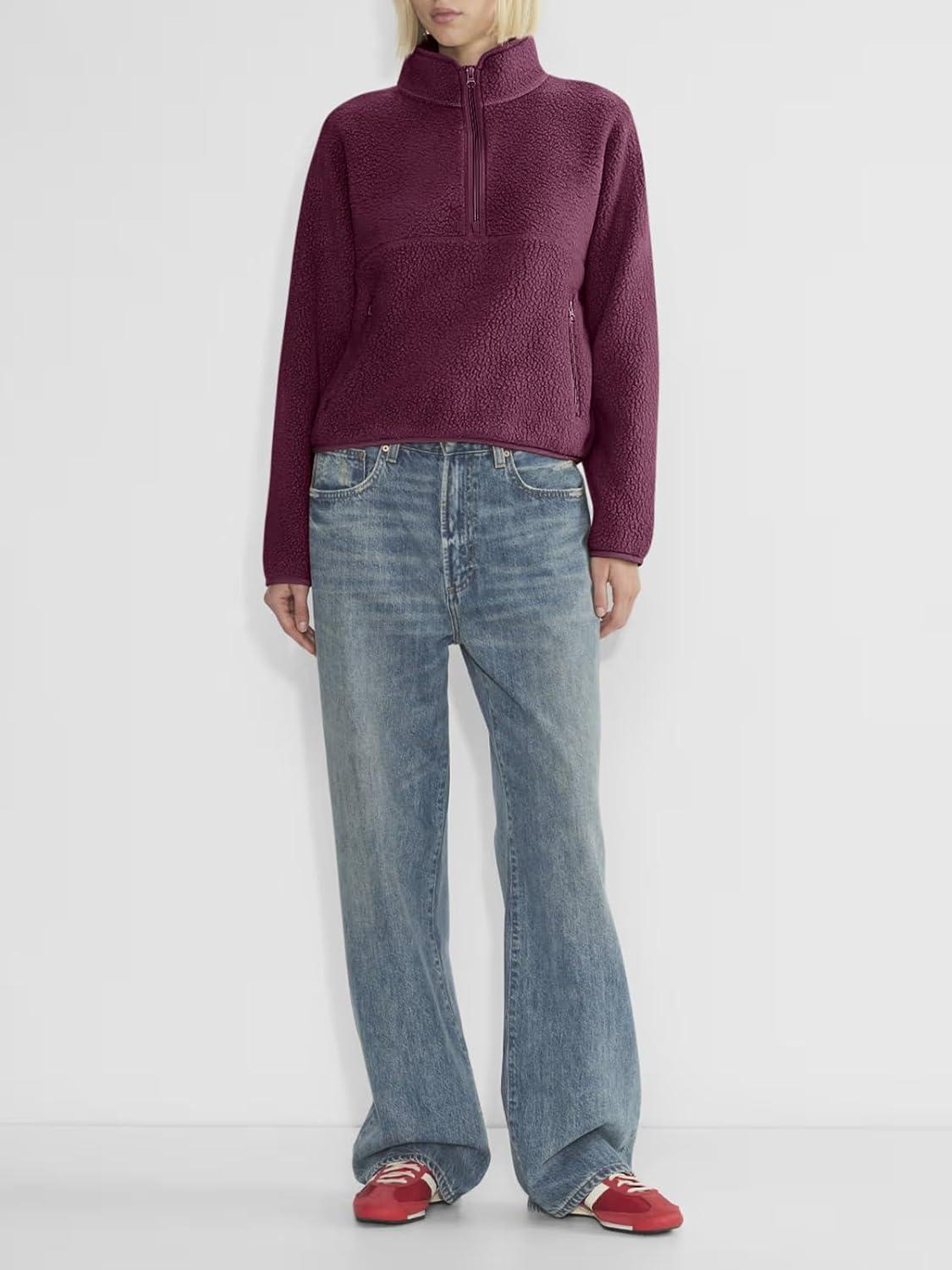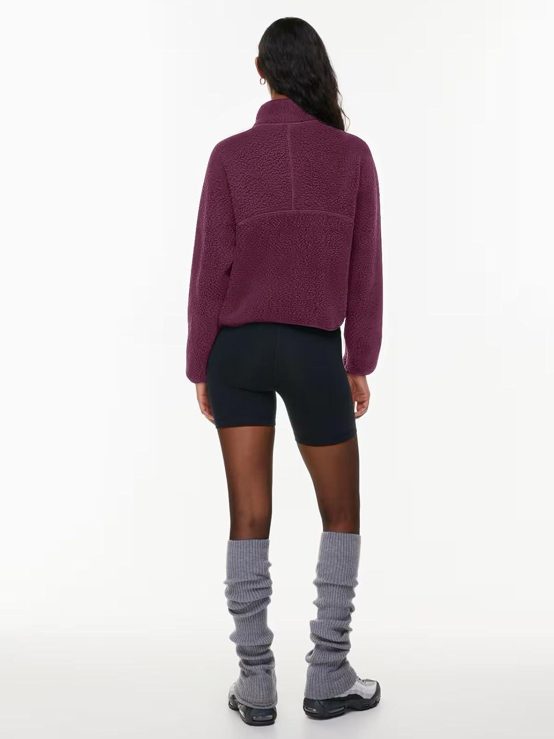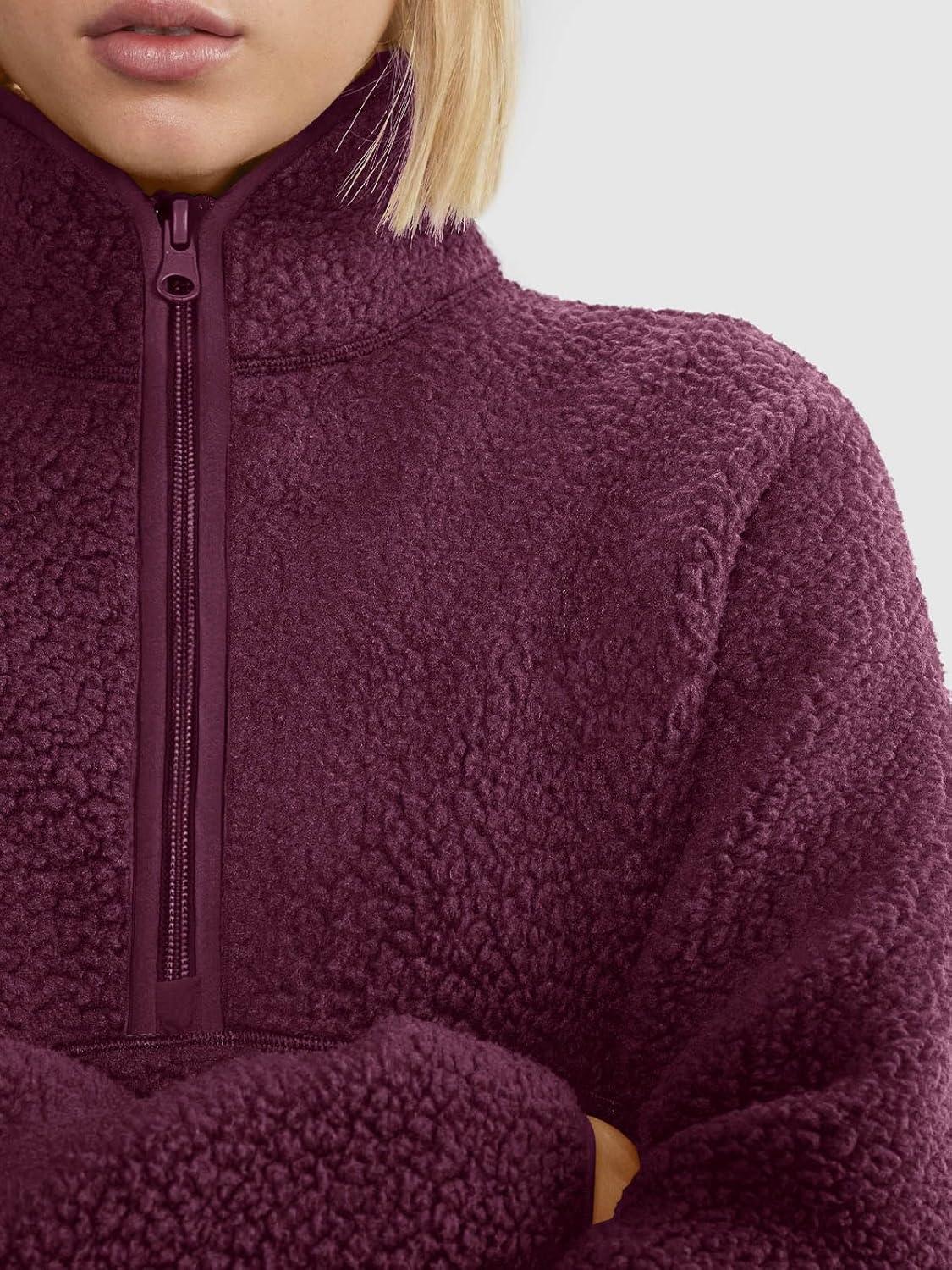 LASLULU Womens Half Zip Pullover Cropped Sweatshirts Sherpa Fleece Jacket Fuzzy Sweaters Cute Winter Jackets with Pockets(Burgundy)