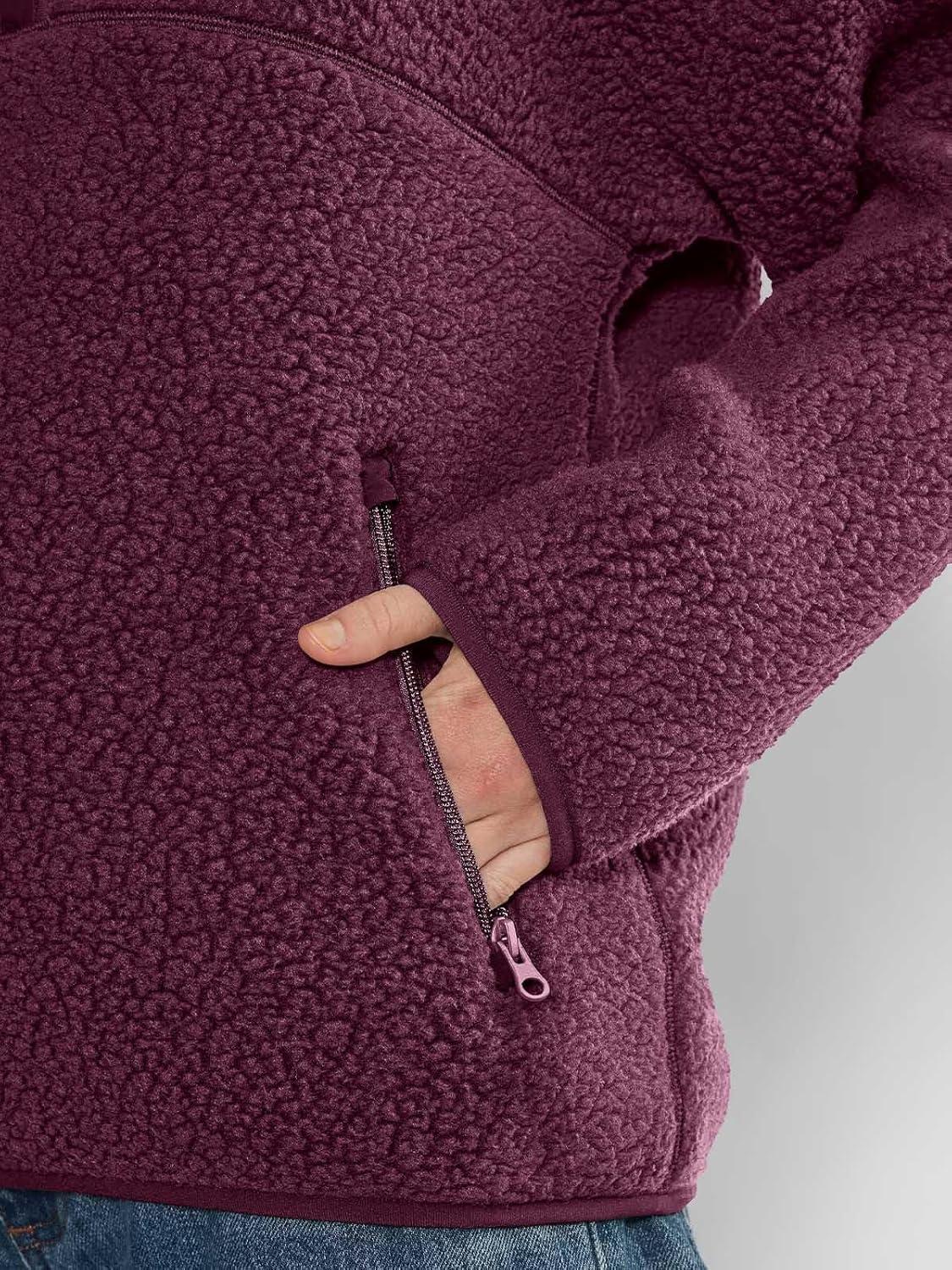 imageLASLULU Womens Half Zip Pullover Cropped Sweatshirts Sherpa Fleece Jacket Fuzzy Sweaters Cute Winter Jackets with PocketsBurgundy