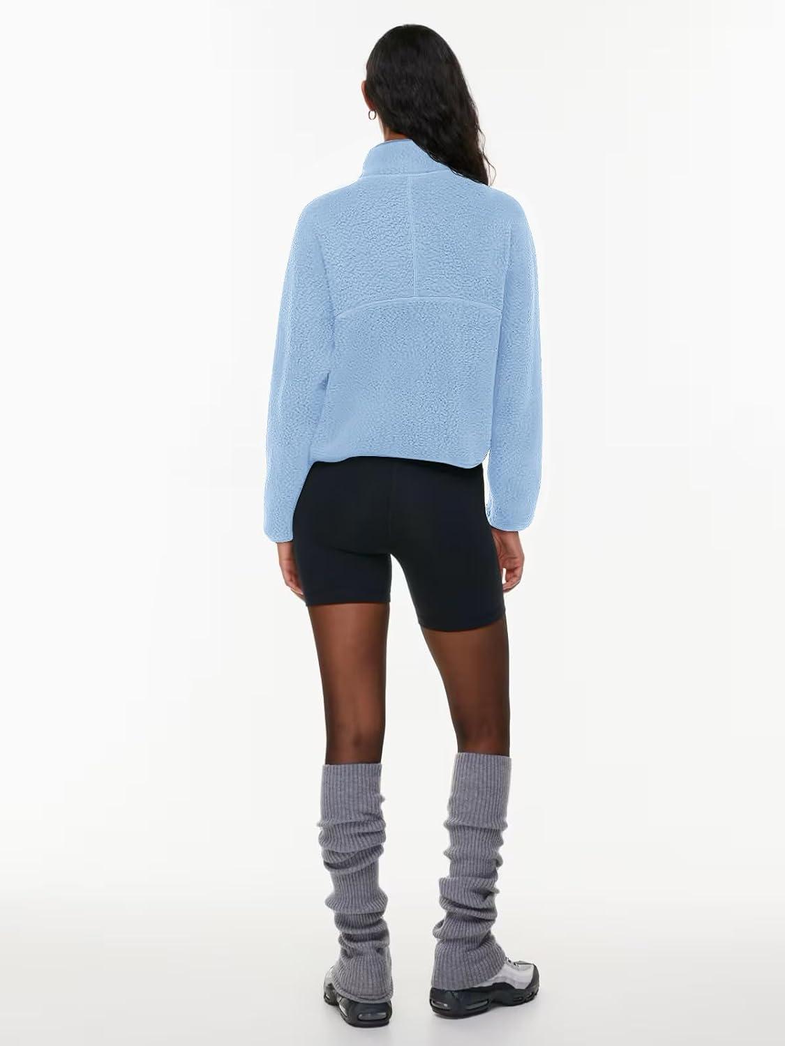 LASLULU Womens Half Zip Pullover Cropped Sweatshirts Sherpa Fleece Jacket Fuzzy Sweaters Cute Winter Jackets with Pockets(Light Blue)