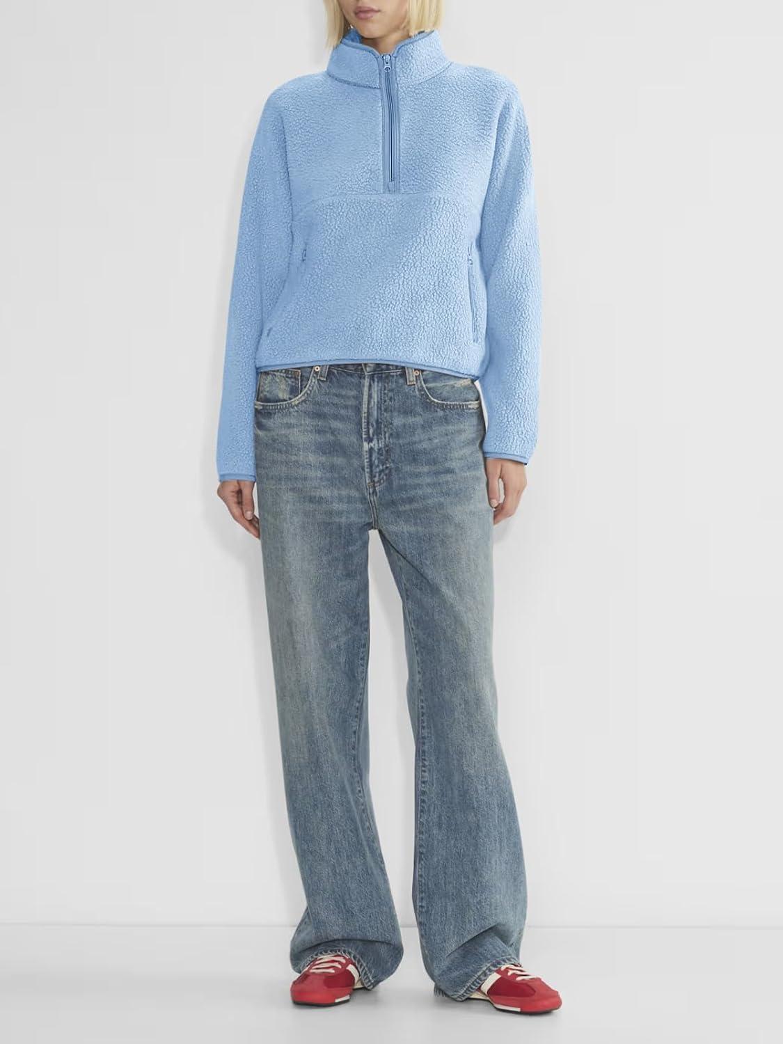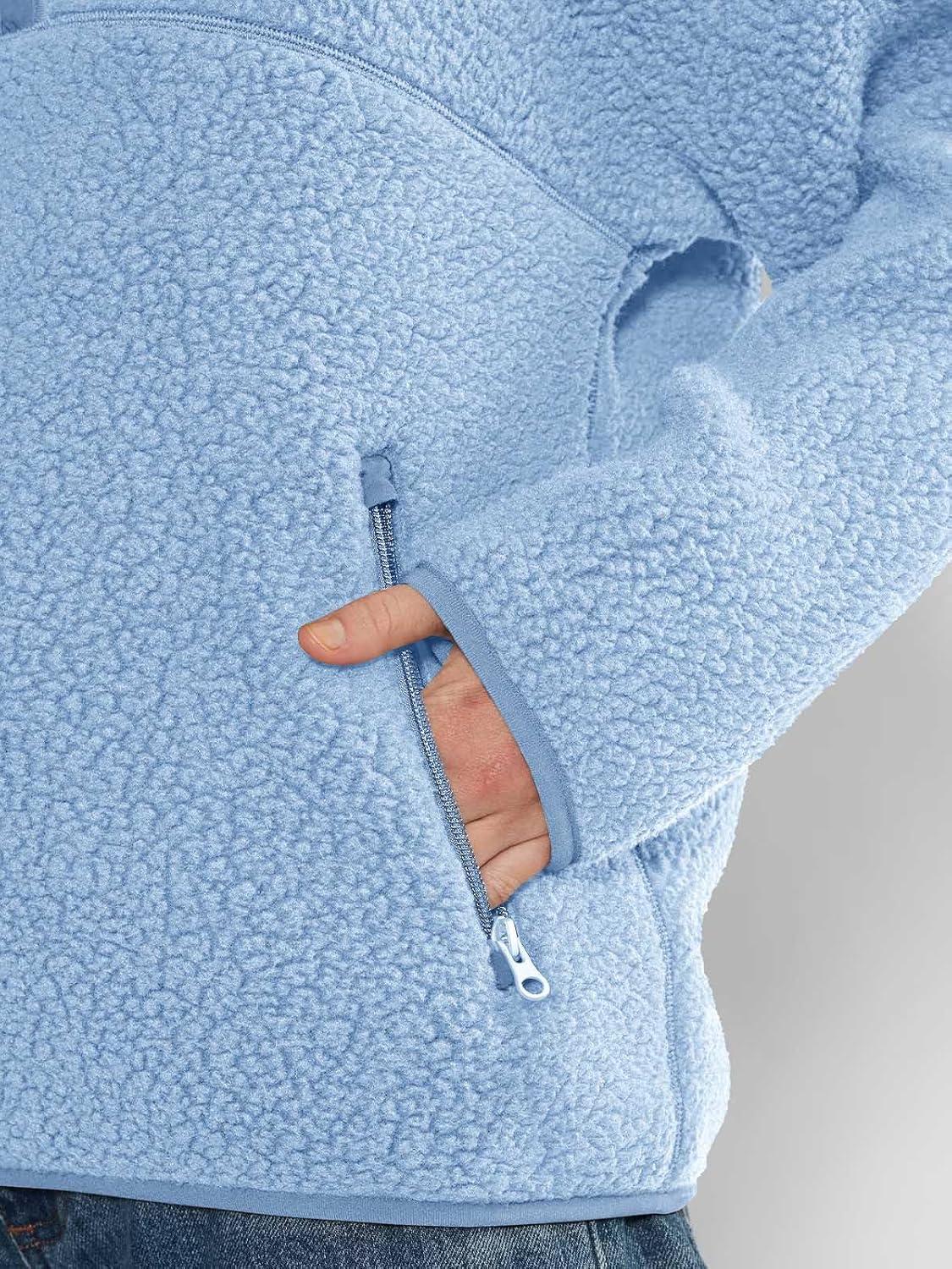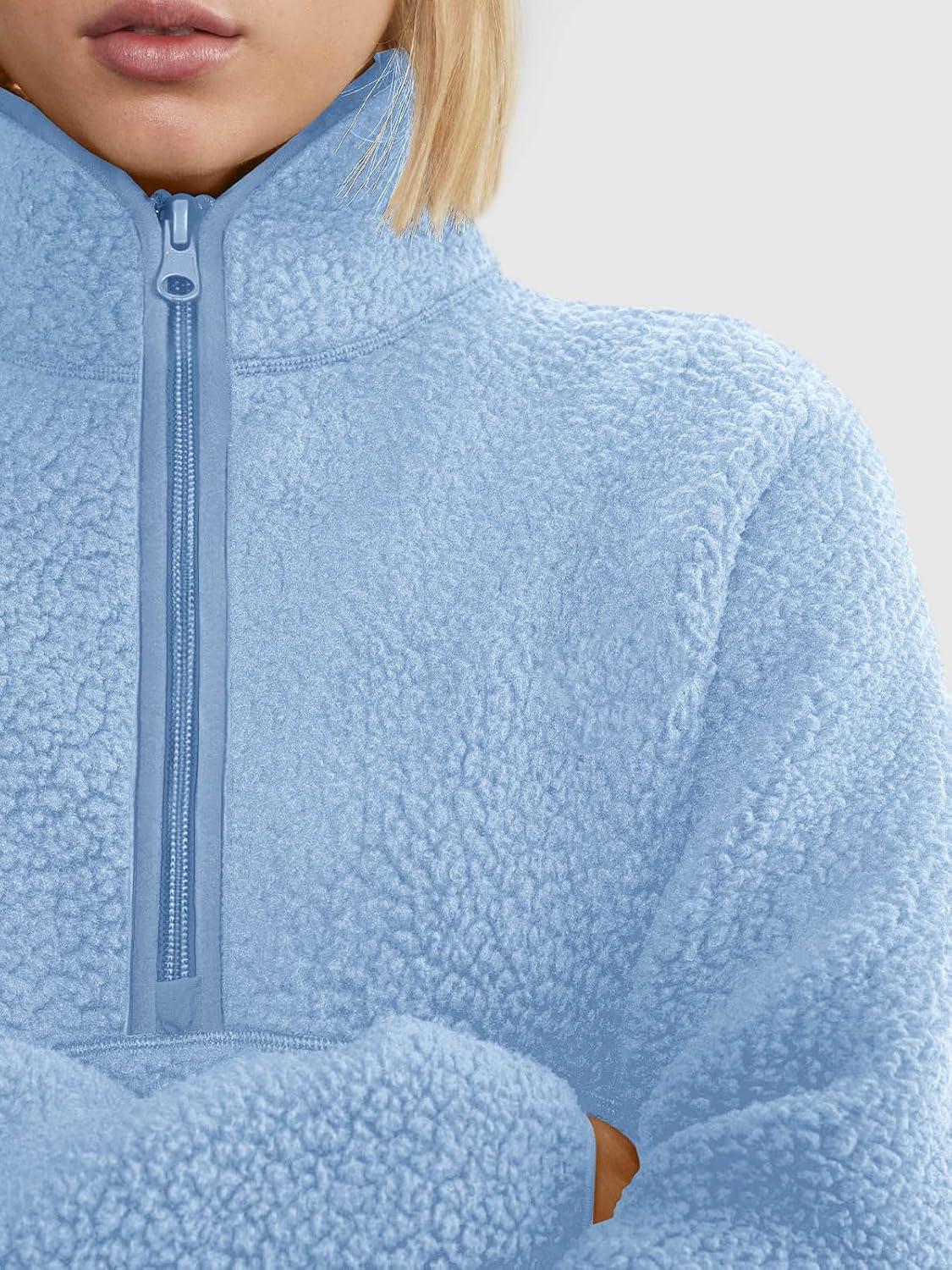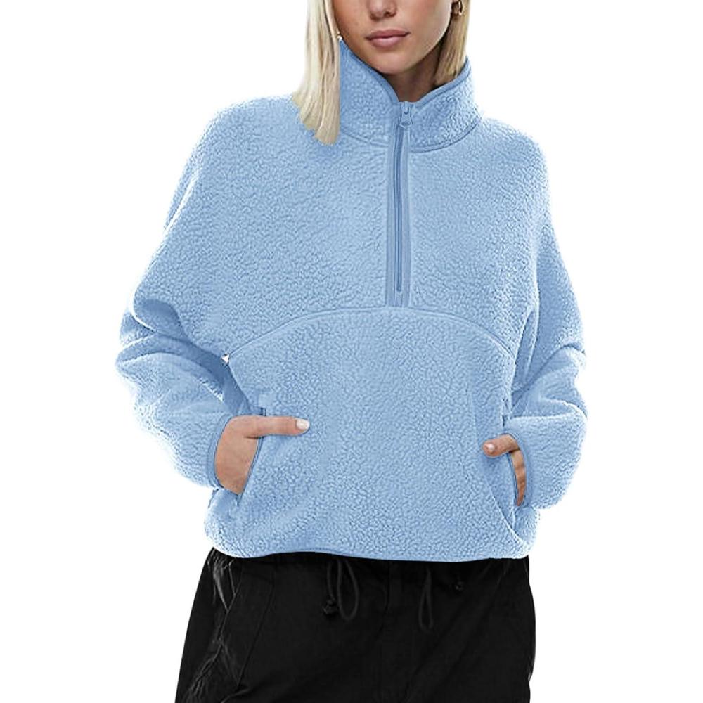 imageLASLULU Womens Half Zip Pullover Cropped Sweatshirts Sherpa Fleece Jacket Fuzzy Sweaters Cute Winter Jackets with PocketsLight Blue