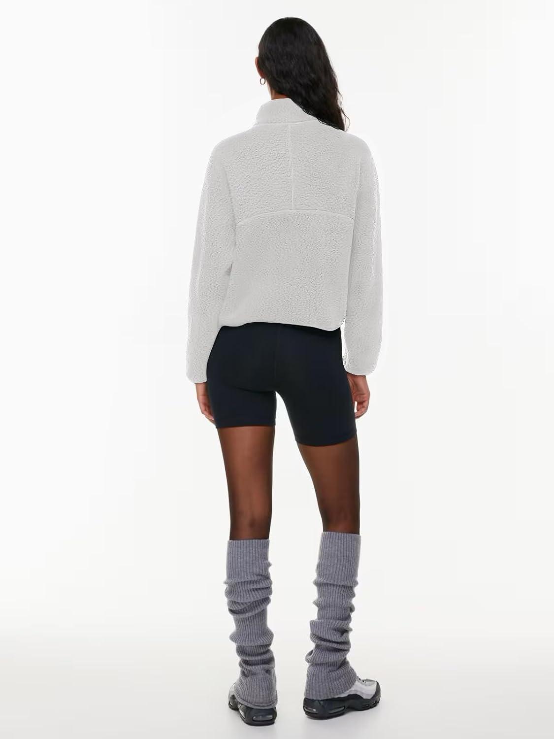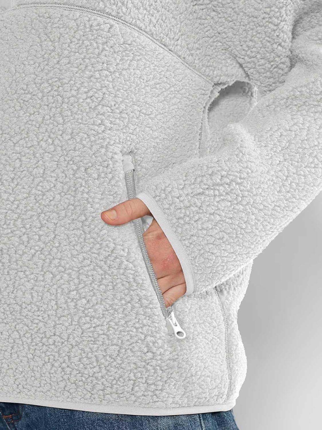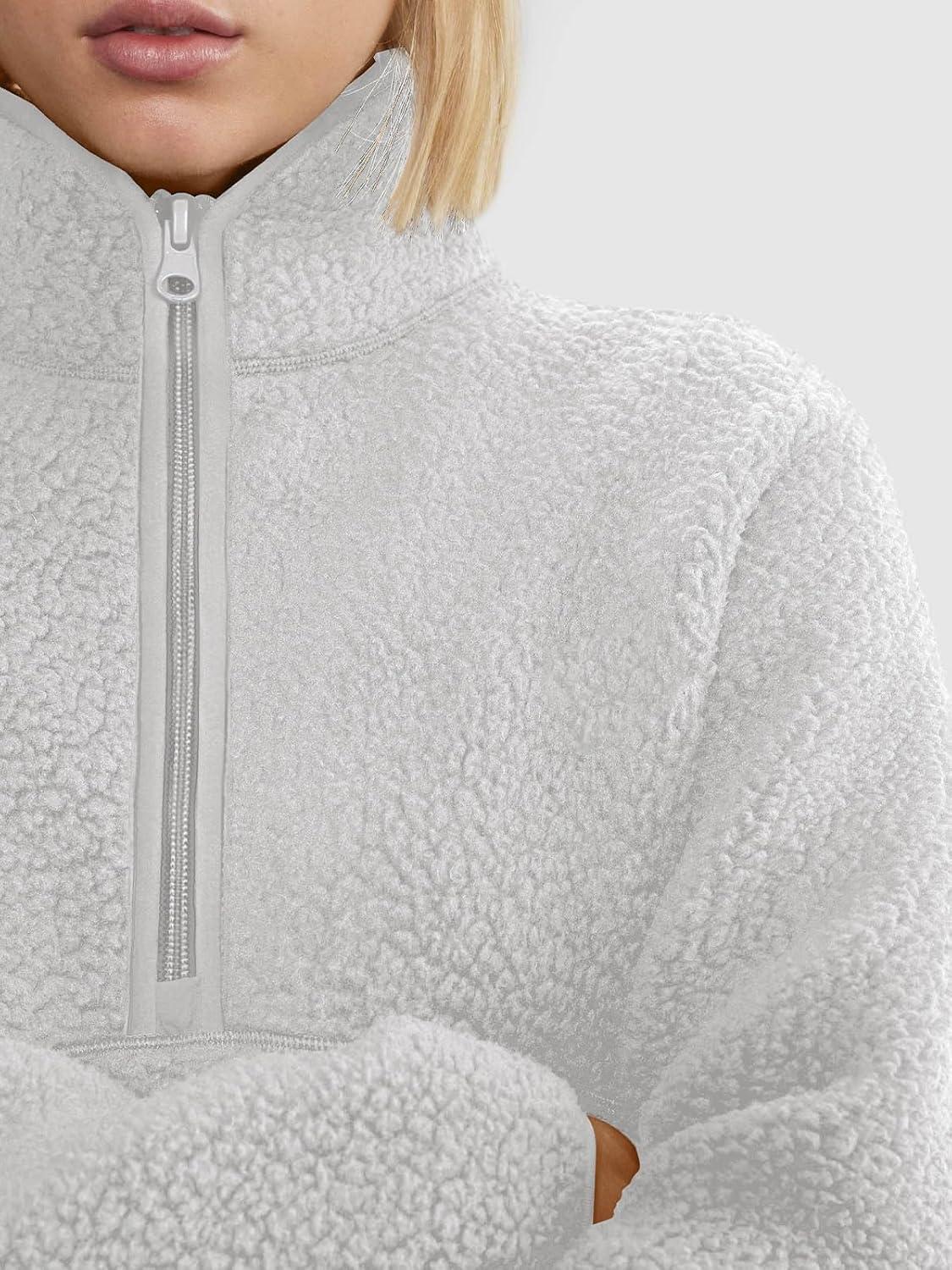 LASLULU Womens Half Zip Pullover Cropped Sweatshirts Sherpa Fleece Jacket Fuzzy Sweaters Cute Winter Jackets with Pockets(Light Grey)