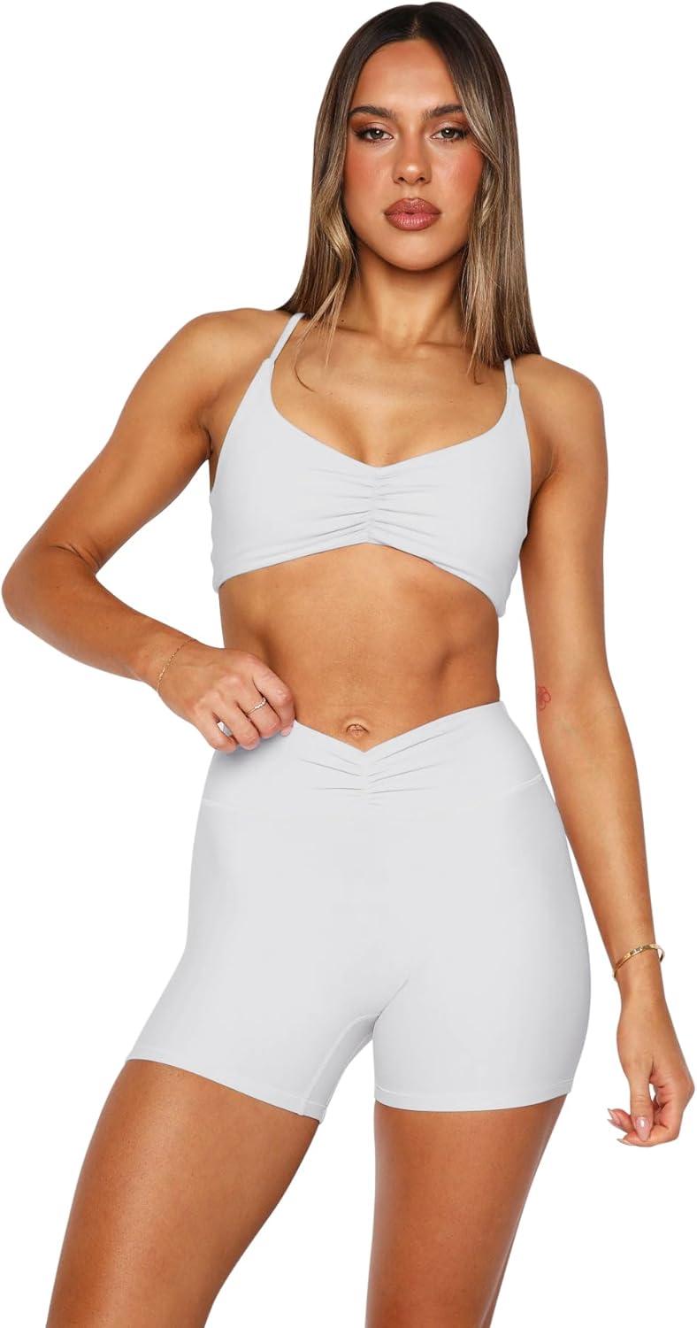 LASLULU Womens Sports Bra Sexy Spaghetti Strap Backless Bra Workout Gym Yoga Bras Tops Padded Sport Bras(White)