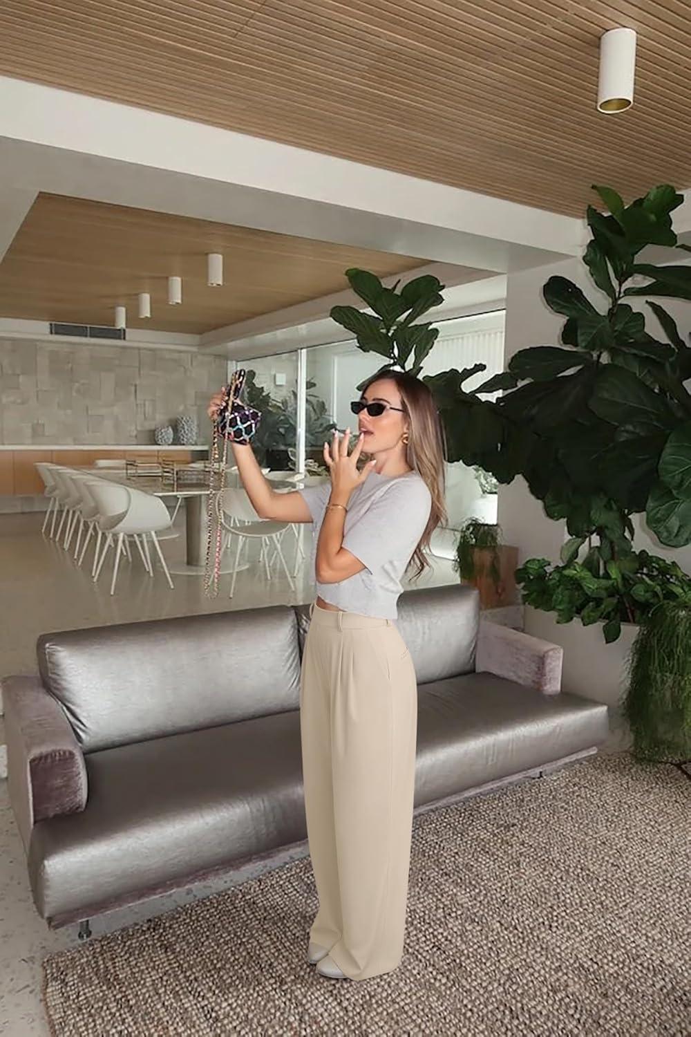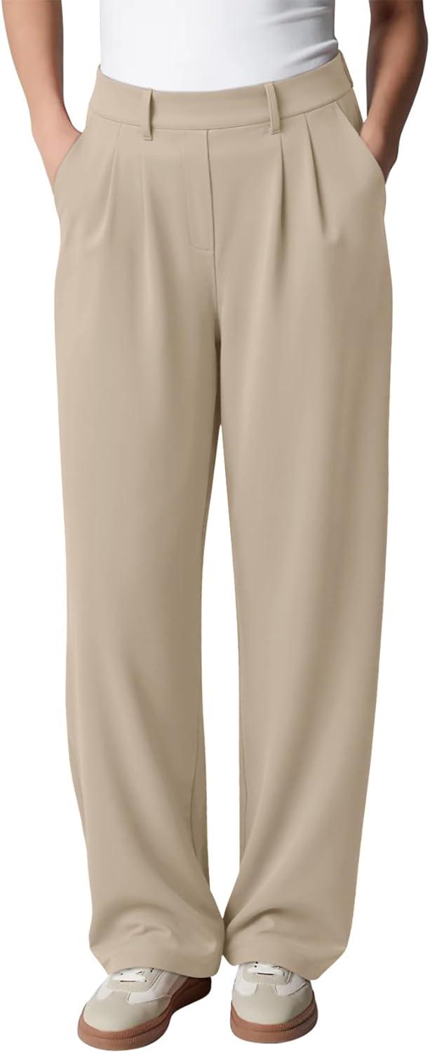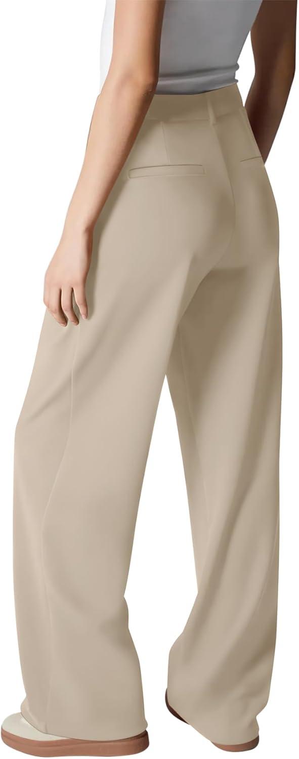 LASLULU Womens Yoga Dress Pants Casual Wide Leg Stretchy Office Travel Trousers Business Casual Work Pants Slacks(Khaki)
